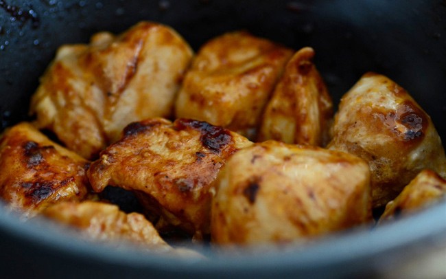 - Skölj kycklingen och skär den eventuellt i mindre bitar, ca 4x5 cm.